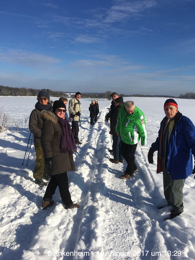 19 Wanderfreunde wanderten mit uns durch die Winterlandschaft im Mürel.