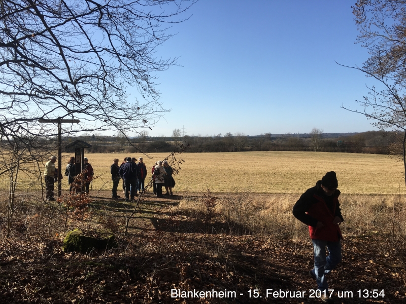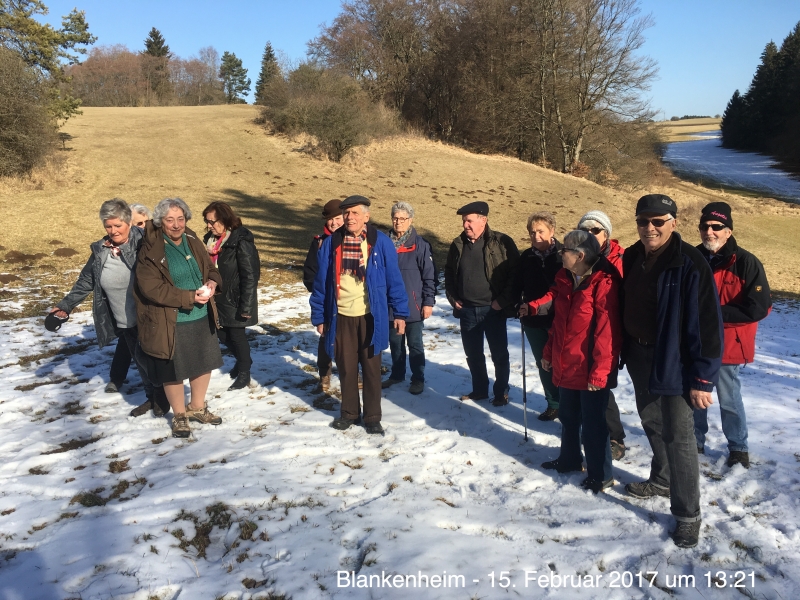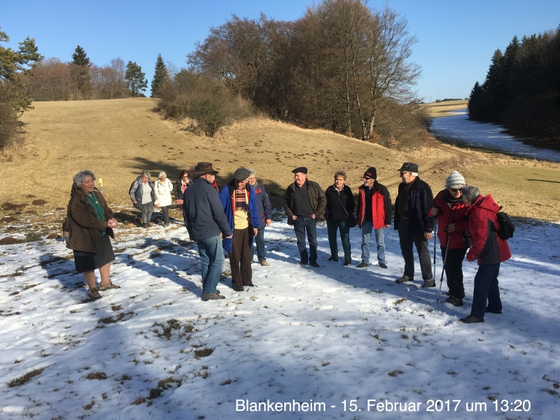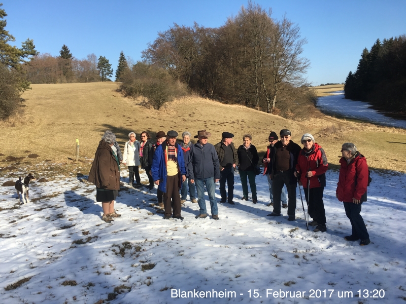 Gemütliche Wanderung bei Sonnenschein mit 15 Teilnehmern und Hund Rica.