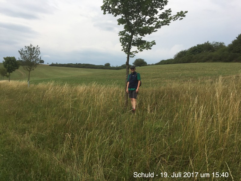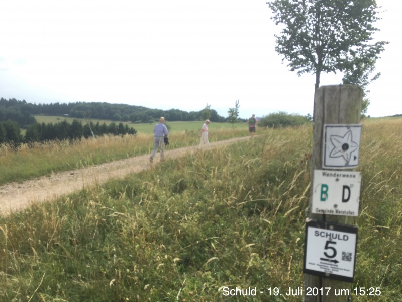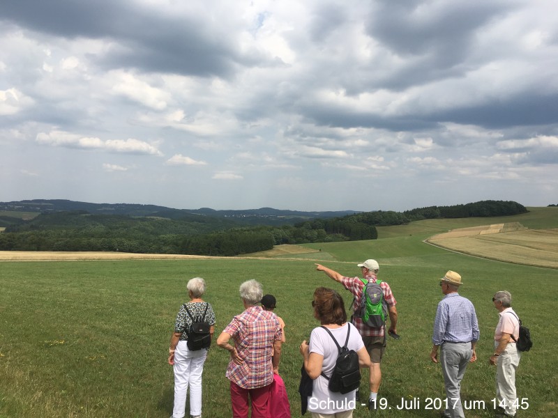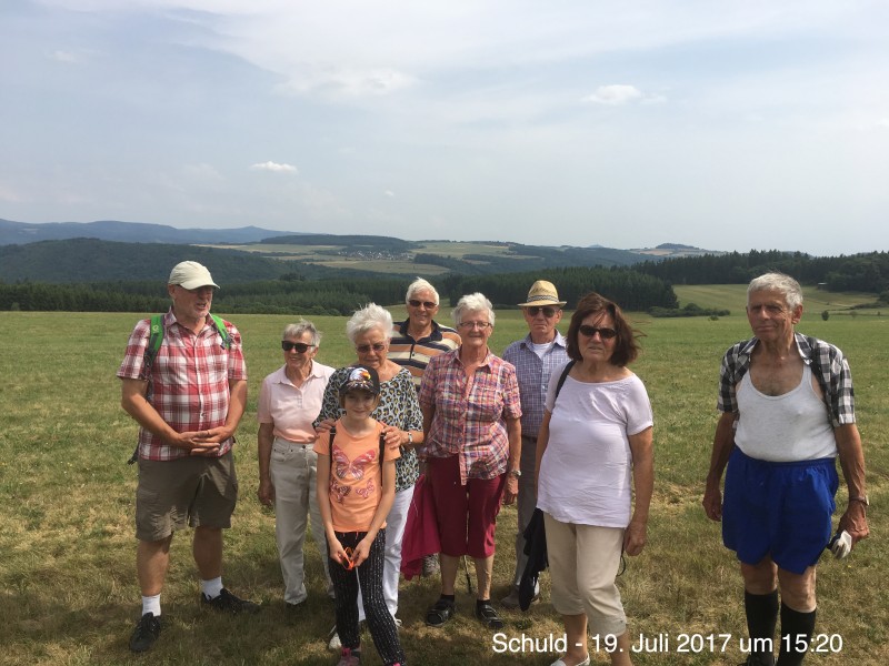 Angenehme Wanderung mit 10 Personen. Trotz angesagter Hitze, wegen der freien Fläche und der Höhe, luftig und kühl.Schöne Blicke auf den Aremberg. Weitblicke bis zur Hohen Acht.