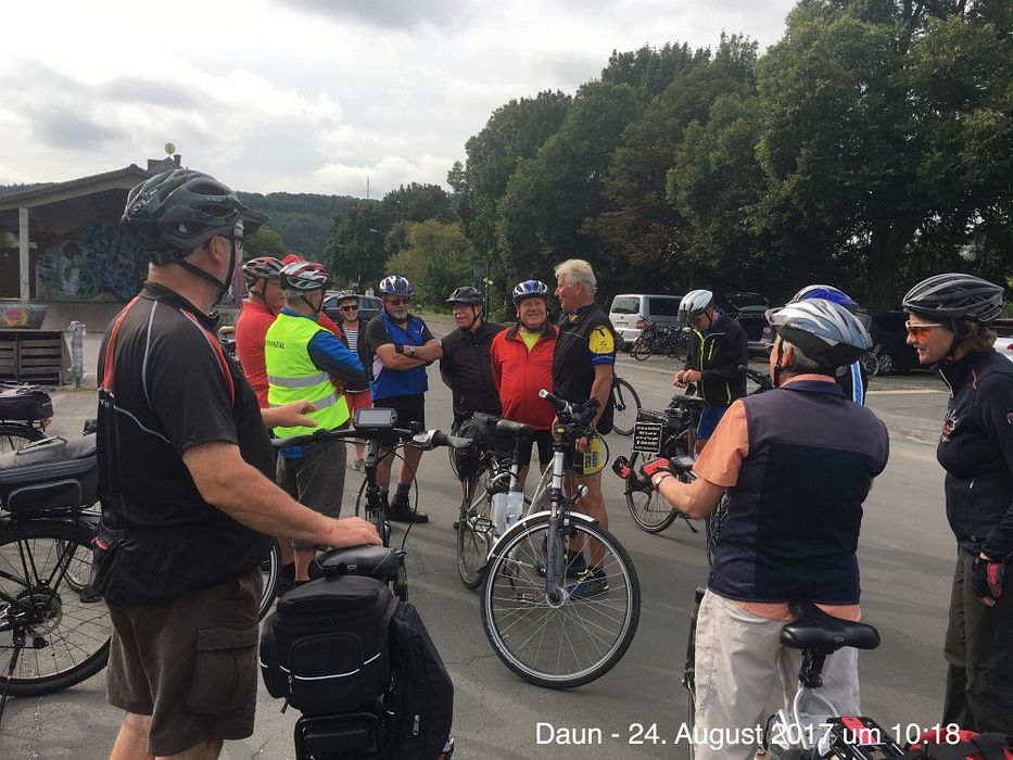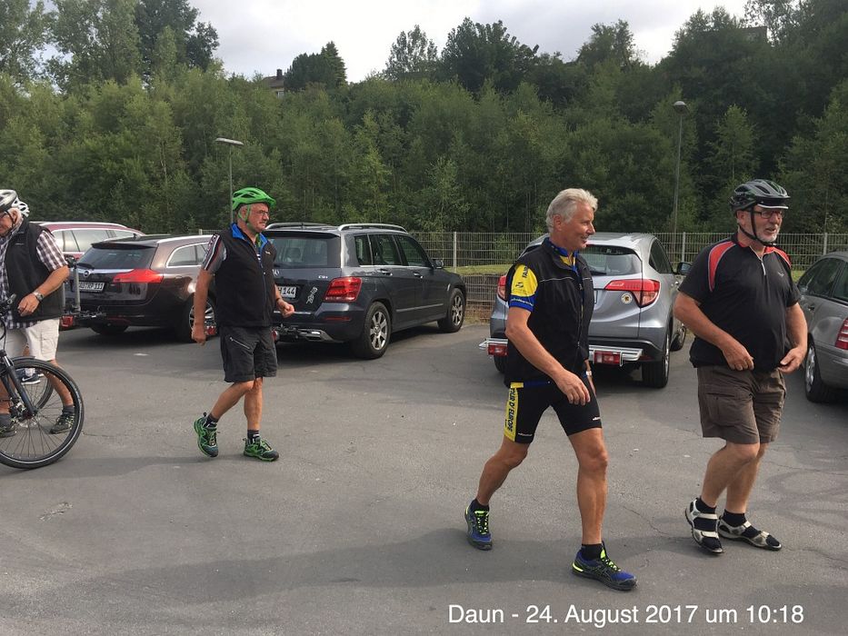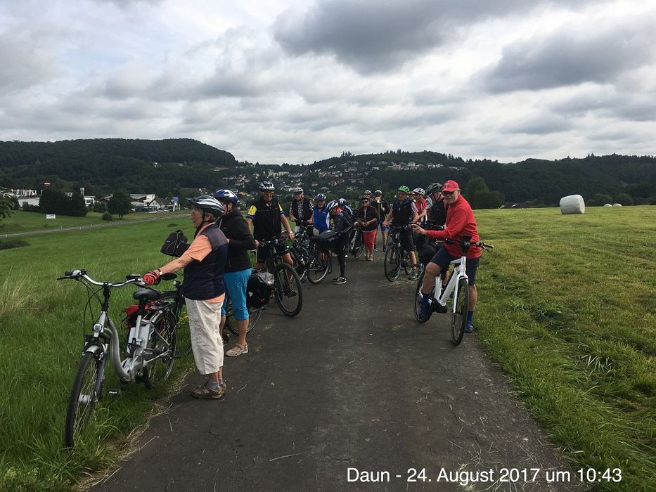 Mit dem Auto nach Daun zum Bahnhof. Von dort sofort los auf dem Kosmosradweg Richtung Meerfeld.