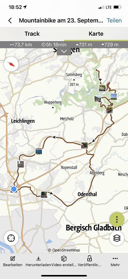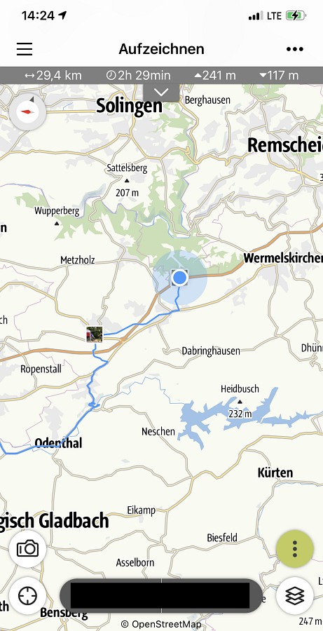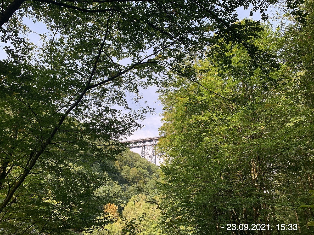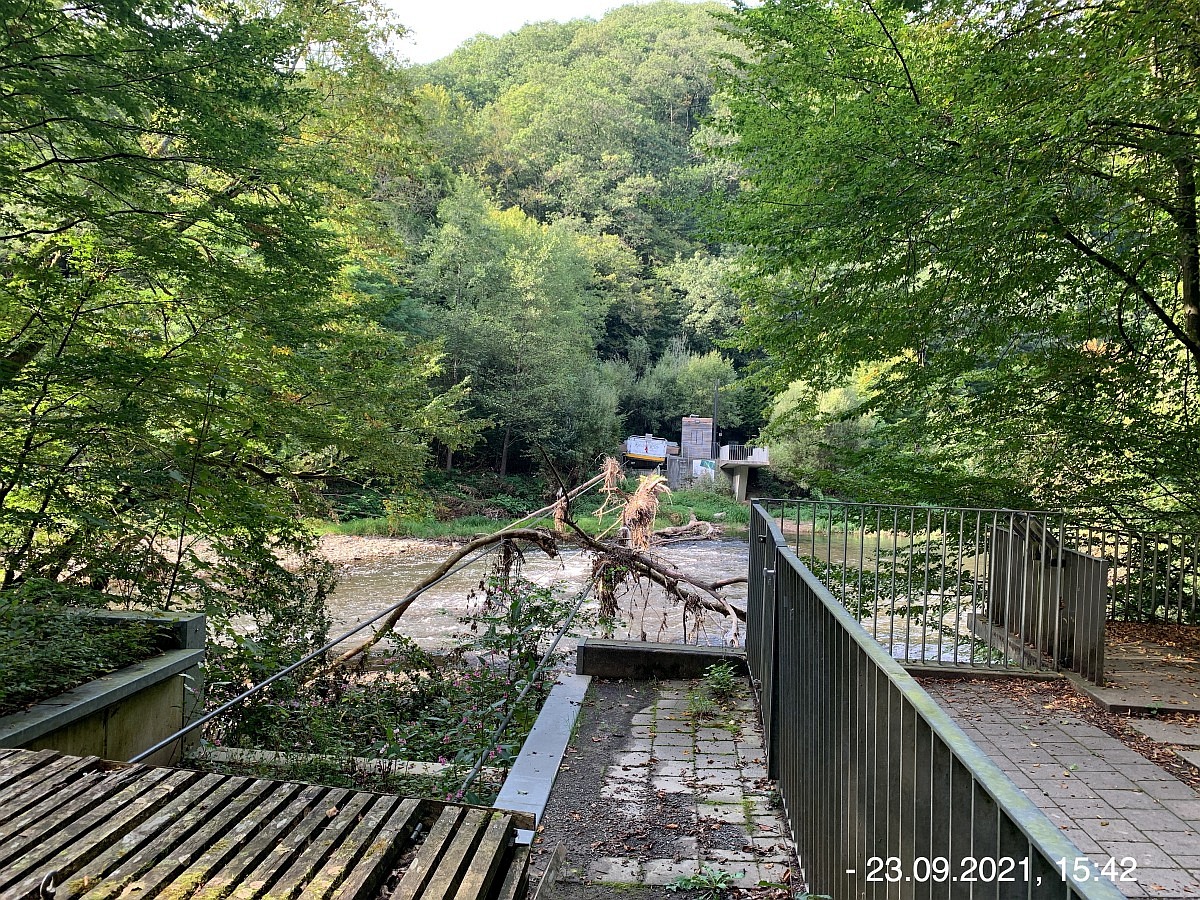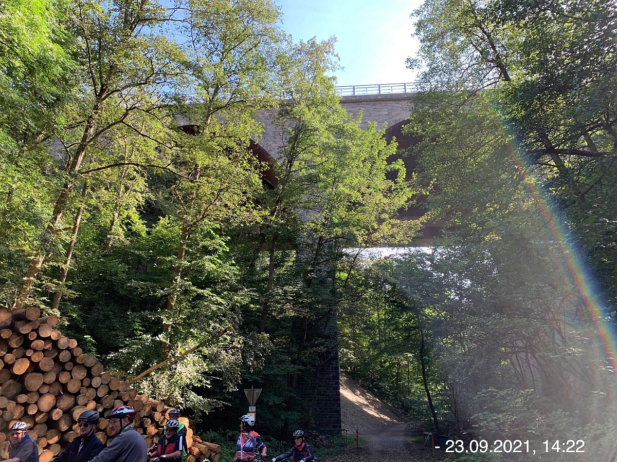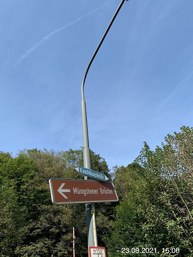 Nach der langen Anfahrt und zusätzlicher halbstündiger Verzögerung ging's in Leverkusen von der BayArena aus los auf unsere ausgedehnte Tour. Da Rudolf so nett war, und uns seine Planungs-Unterlagen gegeben hat, werde ich diese hier einarbeiten - Planung - Anfahrpunkte - Müngstener Brücke - und nur noch einige zusätzliche Stichpunkte nennen. Im letzten Bild der Bildergalerie kann man den Streckenverlauf gut nachvollziehen. Das Wetter war einfach toll. Im Bergischen Land ein ewiges Auf und Ab, ohne eBikes wäre das schwer zu bewäligen gewesen. Alle kamen gut zurecht. Radwege zumeist in gutem Zustand. Teilweise vom Unwetter leicht beschädigt. Man konnte auch sehen, dass die Wupper über die Ufer getreten war, und Verwüstungen angerichtet hatte. Auch das Waldsterben ließ sich erahnen, da abgestorbene und dürre Nadelbäume und auch viele gefällte Baumstämme zu sehen waren.