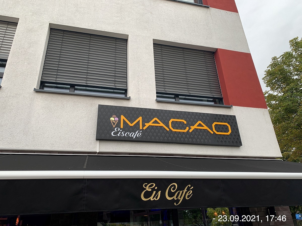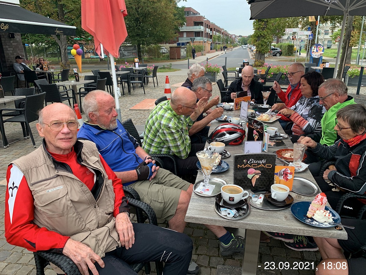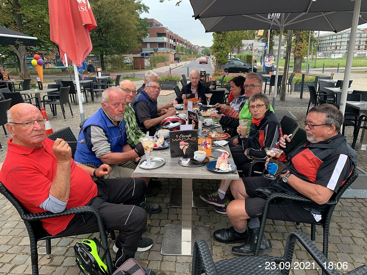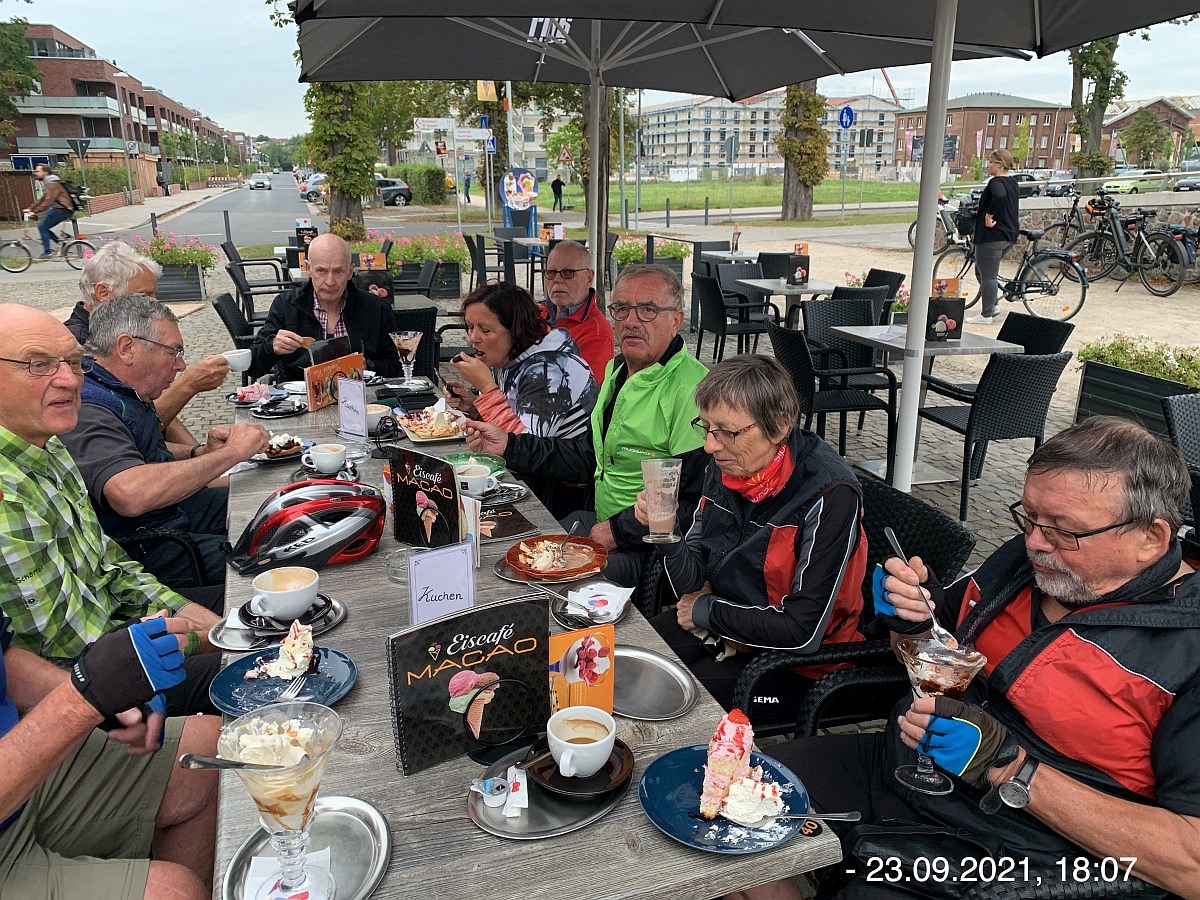 Wohlverdienter und gemütlicher Abschluss kurz vor Ziel/Parkplatz im MACAO EisCafe. So spät waren wir noch nie. Aber super.