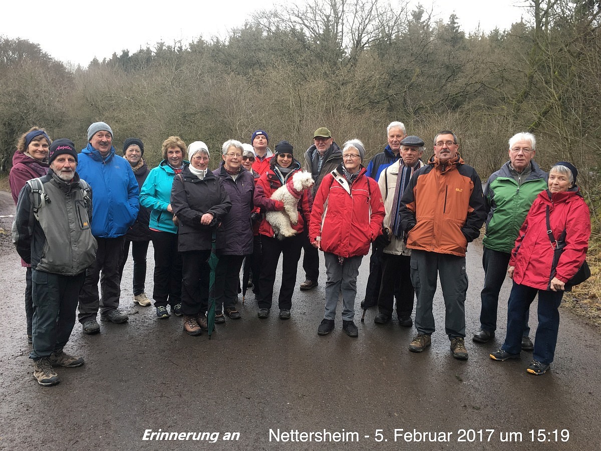Gemütliche Winterwanderung ohne Schnee, aber mit Sonnenschein und 18 gutgelaunten Personen.