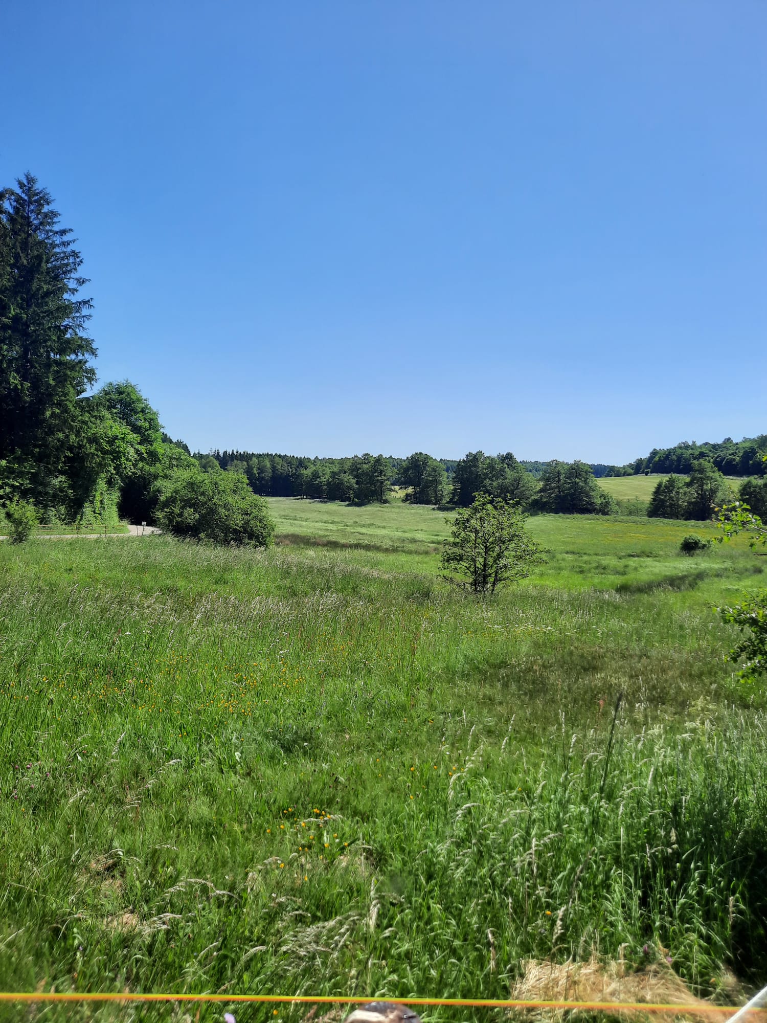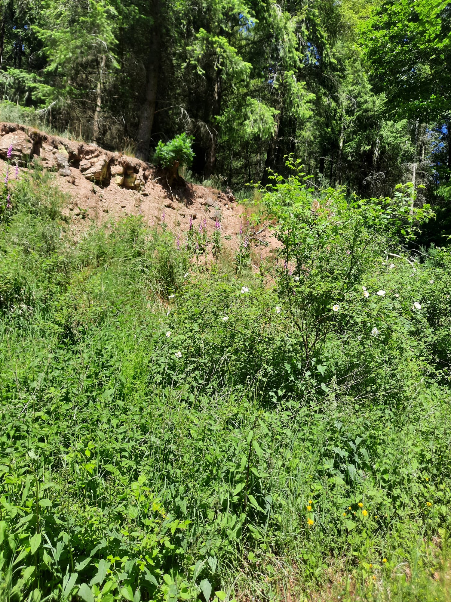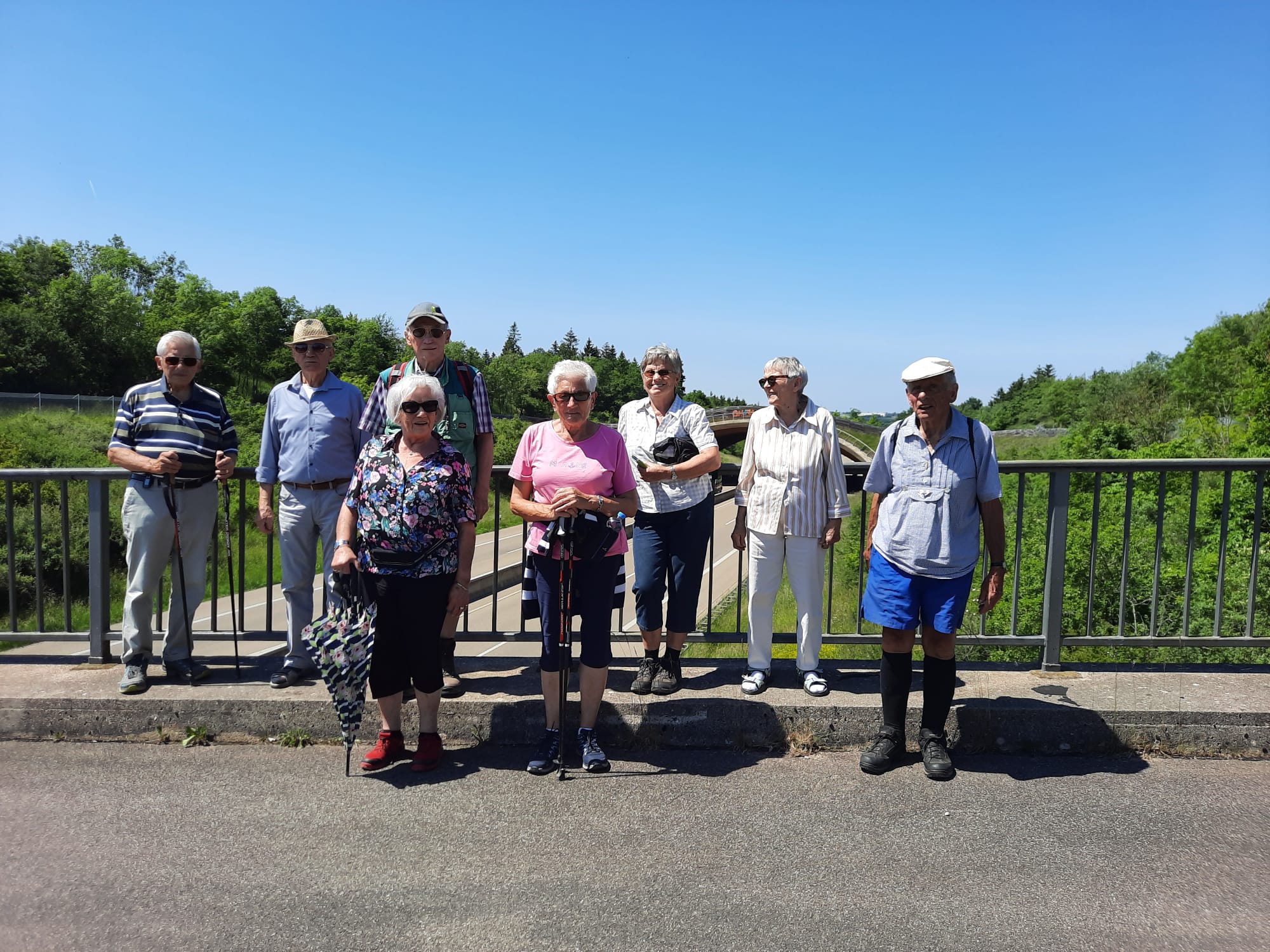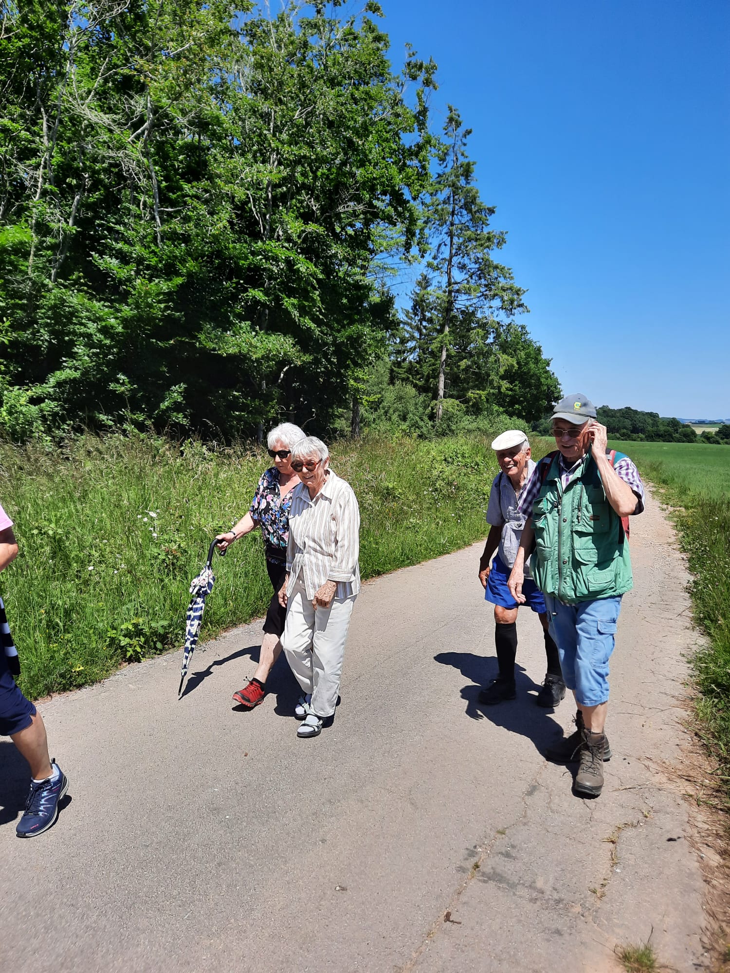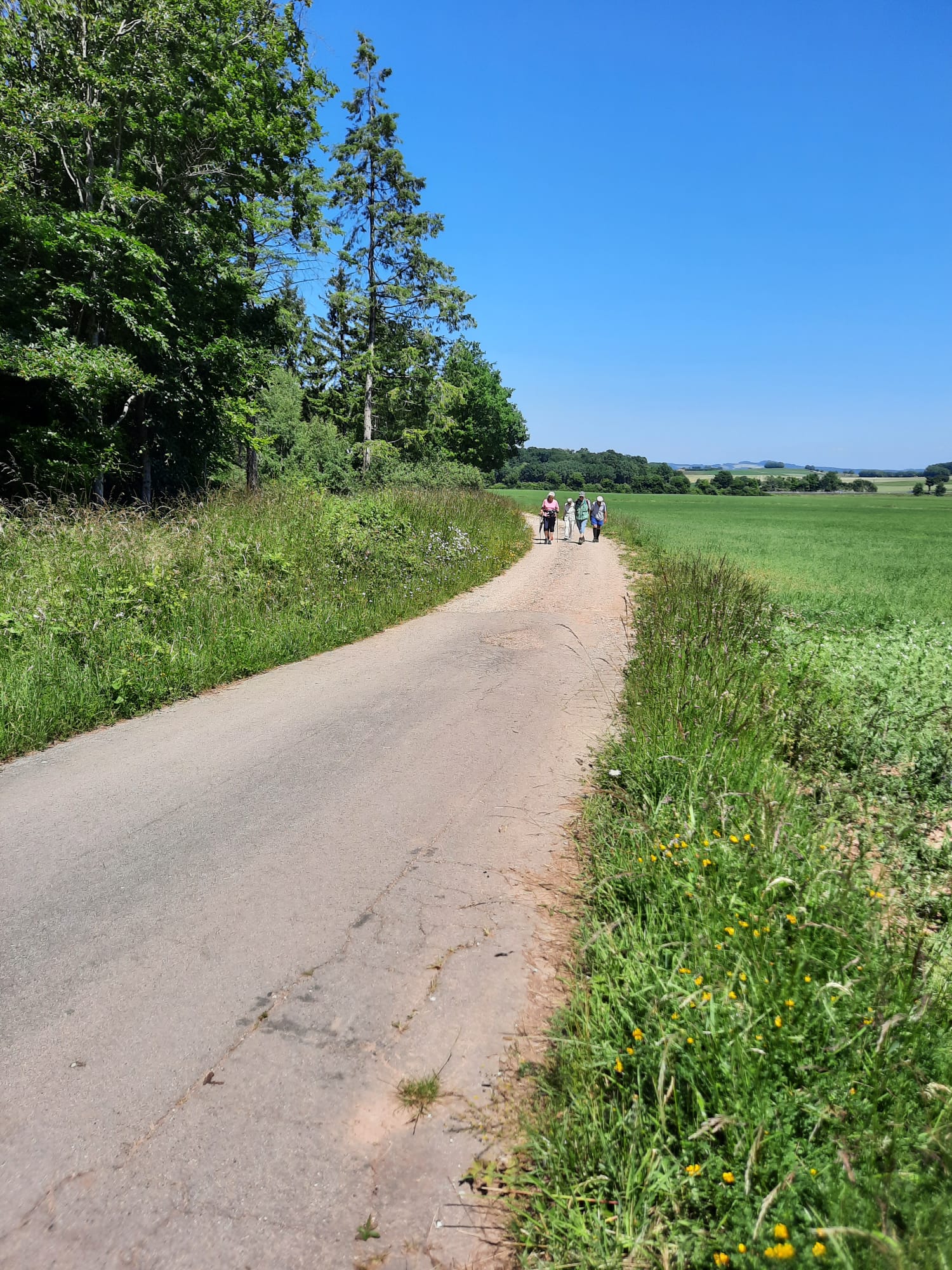 Vom Parkplatz Lühbergstraße in Blankenheim über Tondorf zum Parkplatz Birkenheck an der 477 kurz vor der Straße nach Frohngau. Dort hatten sich schon weitere Mitwanderer:innen versammelt. Von hier aus starteten wir dann auch unsere Runde. Zuerst etwas nördlich entlang der 477, dann auf einem befestigten Wanderweg, über die A1, mit Blick auf die Wildbrücke, westlich Richtung Genfbachtal. Wetter wanderfreundlich, trocken, angenehm warm, blauer Himmel, Wanderwege in gutem Zustand. Immer wieder durch kühlende Waldstücke, dort dann auch kurze Pausen eingelegt. Natur voll grün. Als Blumen möchte ich diesmal nur die Skabiose und den Fingerhut erwähnen. Leider hatte ich mein Handy vergessen und konnte so die Strecke nicht aufzeichnen. Edith war so nett und hat die schönen Bilder gemacht. Am Genfbach angekommen, diesen überquert und auf einem parallelen Wanderweg in östlicher Richtung zurück zum Startpunkt. Gemütlicher Abschluß in der Bäckerei Bell im Ärztehaus in Tondorf. Ein schöner Nachmittag.