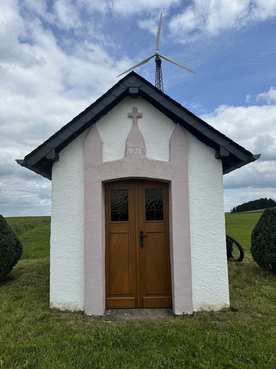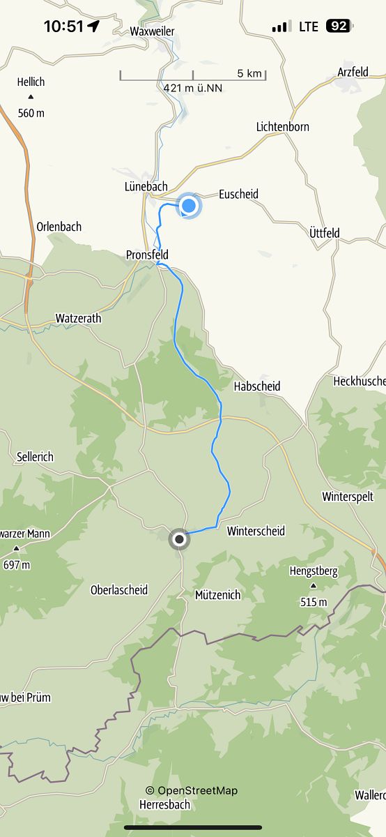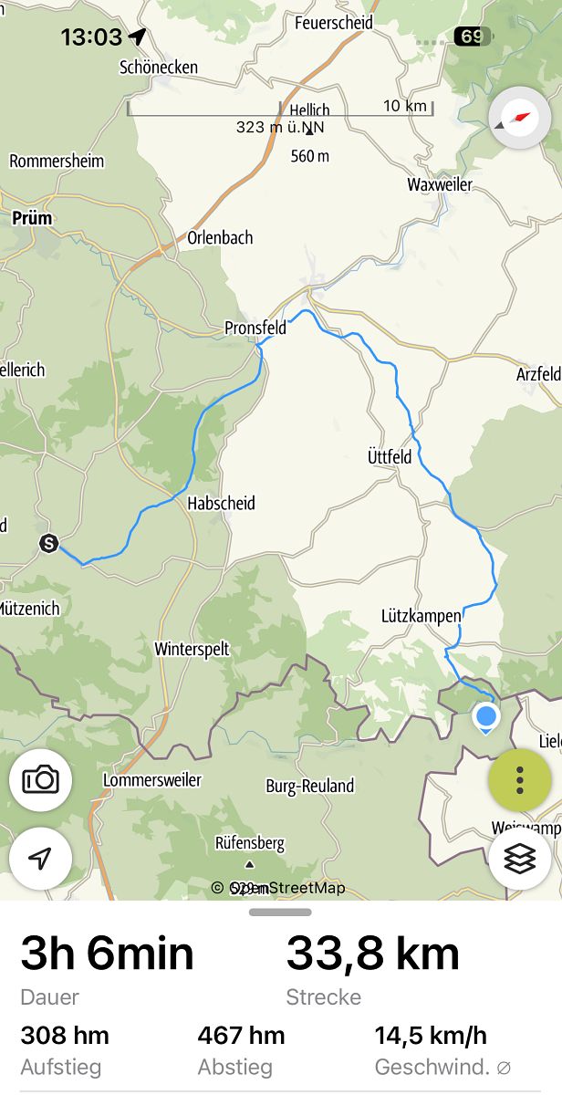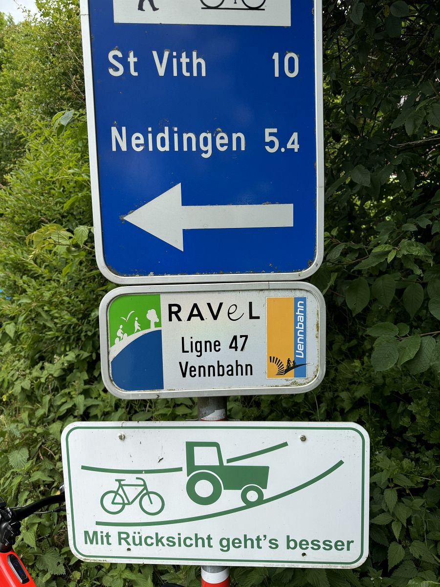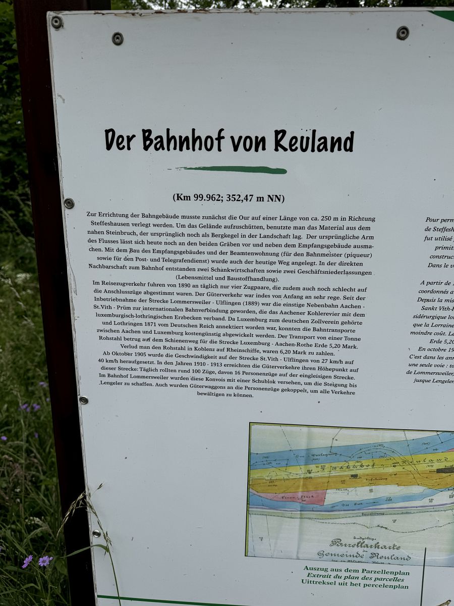 Um 09:15 waren wir auf dem Parkplatz am Kronenburger See versammelt und fuhren von dort im Konvoi nach Bleialf zu unserem Park- und Startplatz gegenüber der Pfarrkirche Maria Himmelfahrt. Kurz nach 10:00 ging's dann los (Wege gut) durch die noch frühlingshafte grüne Eifel-Landschaft in Richtung Pronsfeld. Nach flotter Fahrt machten wir an einem kleinen Fischweiher die erste Rast. Wetter war ganz angenehm. Anfangs noch sehr kühl; (13 Grad) einige zogen zwischendurch noch einen Pullover an. Drohende dunkle Wolken am ansonsten blauen Himmel verkündeten Regen, der aber Gott sei Dank auf unserer gesamten Fahrt nicht eintraf. Später, bei immer öfters wärmender Sonne, wurden die Temperaturen angenehmer. (16 Grad) Runde anfangs auf ebener ehemaliger Bahntrasse, später auch abwechselnd Eifeler bergauf- und ab (bis über 500 HM) mit vielen Fernblicken. Kurzer Aufenthalt an einem super gepflegtem Anwesen mit bunter Gartenanlage. Getreidefelder schon hoch gewachsen und sogar einige Korn- und Mohnblumen an den Feldrainen. Unterwegs fielen auch die vielen Fingerhüte auf. Die Mittagspause und unsere GruppenFotos machten wir an einer kleinen MarienKapelle, genannt 'Reusch Kapelle' (Lage Reusch-Kapelle) bei Lützkampen/Harspelt. Später vorbei am Dreiländereck (Hotel Dreiländerblick). Durch's OurTal, Ouren, vorbei an Reuland, etwas Belgien und über die Vennbahn mit einer weiteren kleinen Pause an einer Grillhütte zurück nach Bleialf. Dort im Cafe Petit unseren wohlverdienten Abschluss abgehalten. Eine schöne und mannigfaltige RadTour mit vielen interressanten Eindrücken. Allen hat es gut gefallen und freuen sich schon auf die nächste Tour am 11.07. im Bereich Schleiden-Gemünd mit Richard.